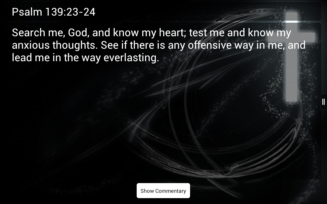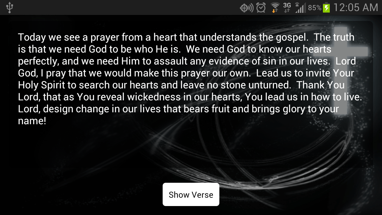 With Verse-A-Day an inspirational bible verse with supplemental commentary will be delivered to your mobile device with the hope of igniting hearts toward a rich relationship with God and sharing this truth in your social communities.