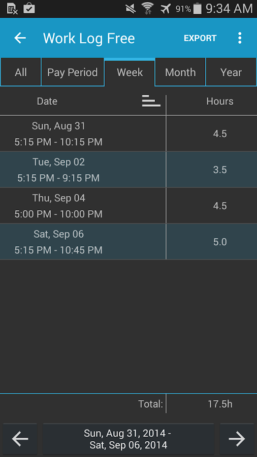 • Set your pay period to automatically calculate how many hours you worked and your wages for each paycheck