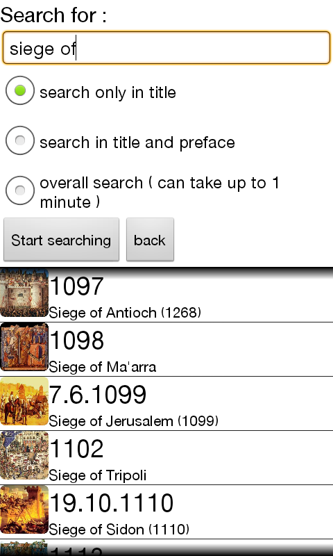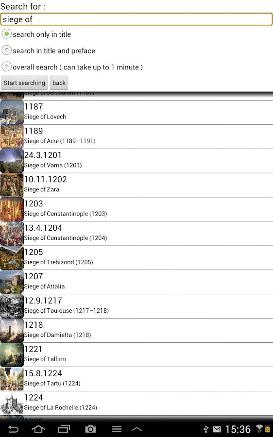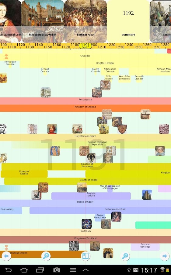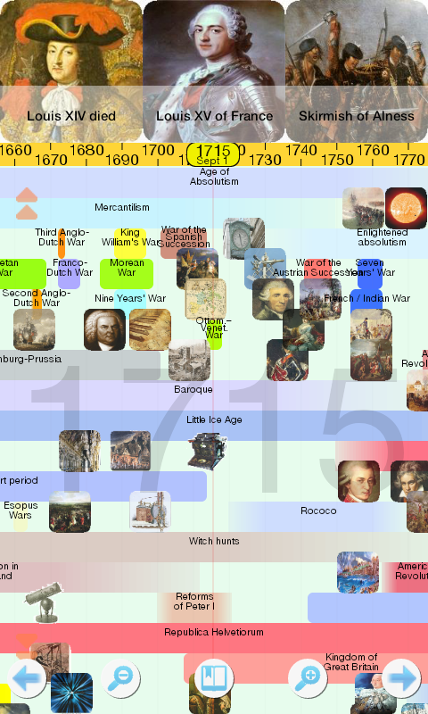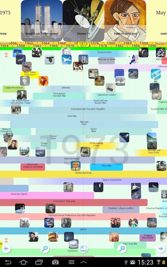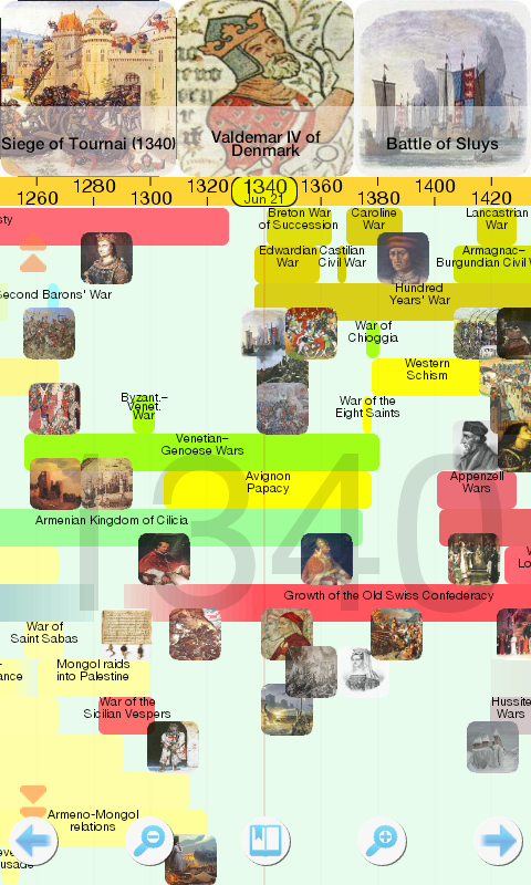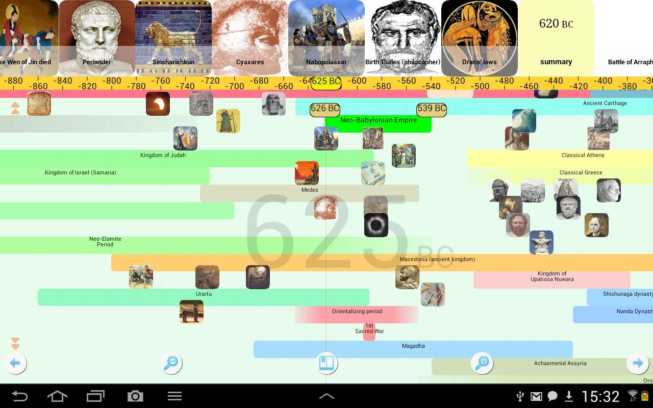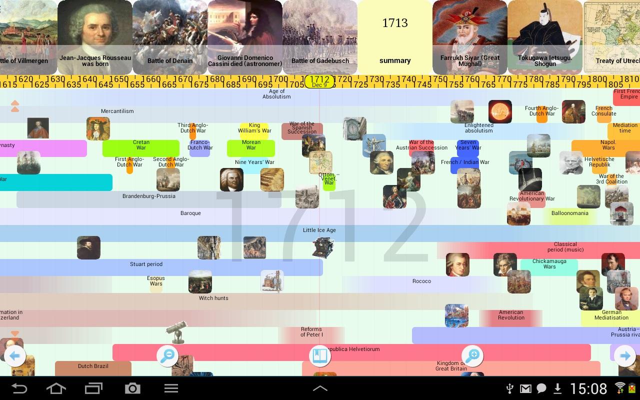Please try first the trialversion 'World History Trial' available on Google Play. Follow the help in the options for enhanced navigation.