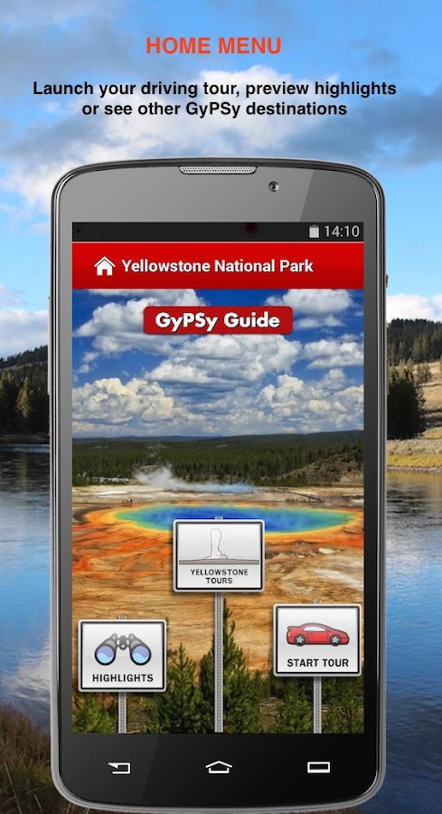 Turn your Android phone or tablet into a Tour Guide and take your driving tours and sightseeing to a whole new level with the GyPSy Guide™ – GPS Tour of Yellowstone National Park. Commentary plays AUTOMATICALLY as you drive so you don't miss any of the best sights and stories along the way.